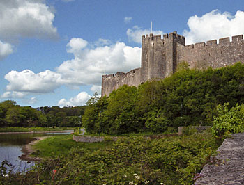 Outside the walls of Pembroke Castle, birthplace of Henry VII. May 2003.