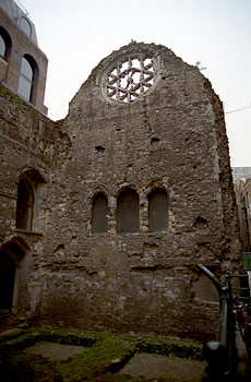 Winchester Palace was the London residence of the Bishops of Winchester and was in use until the 17th century (it was mostly destroyed by fire in 1814). The Palace is on the south the Thames in Southwark and is near Southwark Cathedral, burial place of William Shakespeare’s brother Edmund. The part you see here is from the great hall and includes the remains of the structure for the rose window.