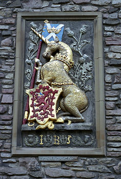 Heraldic panel with the arms of James V of Scotland at the Palace of Holyroodhouse. Photo May 2000.