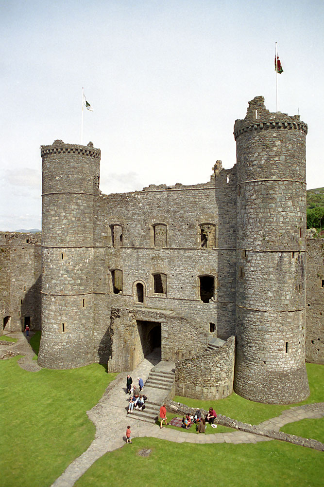 Rear of the gatehouse complex of Harlech Castle. Photo May 2000.