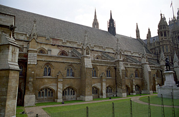 Outside Westminster Hall, one of the few remaining parts of Westminster Palace. Photo May 1998.