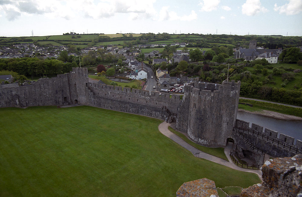View from the top of the Great Keep of Pembroke Castle. Photo May 2003.