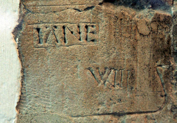 IANE carved into a wall in the Beauchamp Tower of the Tower of London. Photo May 2003.