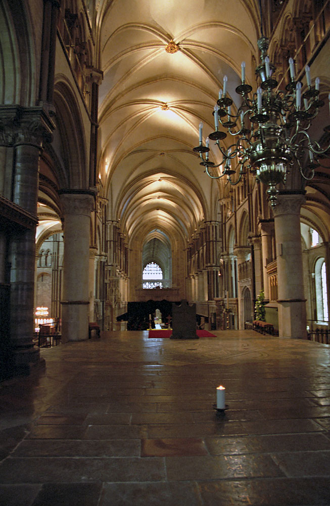 Looking down the length of Canterbury Cathedral. Photo May 2003.