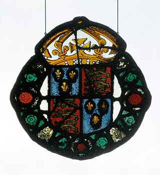 Stained glass of the Royal Coat of Arms of England at the Philadelphia Museum of Art. Photo August 2006.