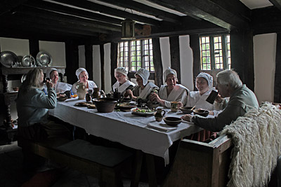 Historical re-enactors at Palmer’s Farmhouse at Mary Arden’s Farm. Photo May 2015.