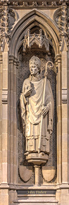 This is one of eight statues on the 19th century screen between the nave and quire of the cathedral. John Fisher was Bishop of Rochester and confessor to Margaret Beaufort and was later beheaded in the reign of her grandson, Henry VIII.