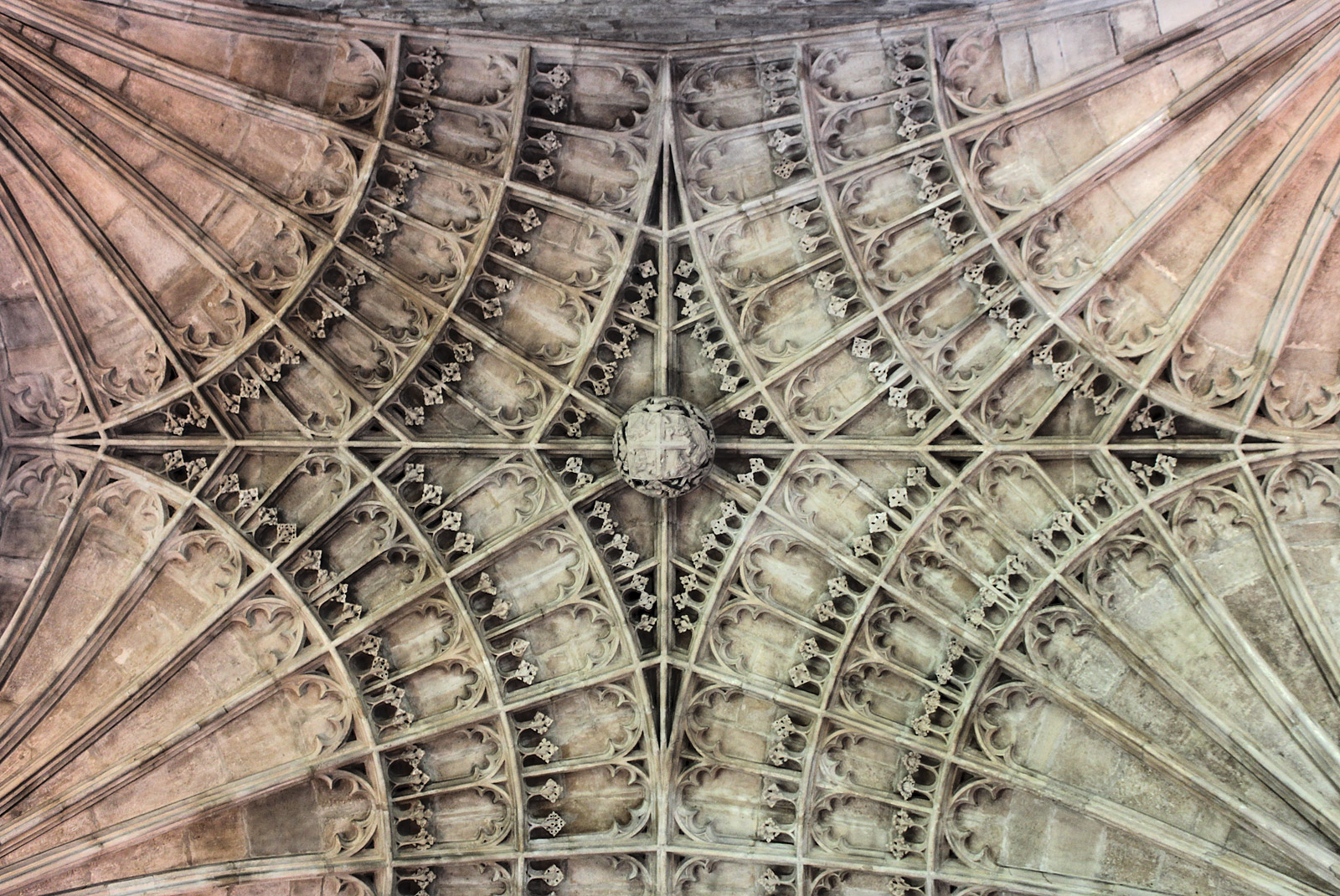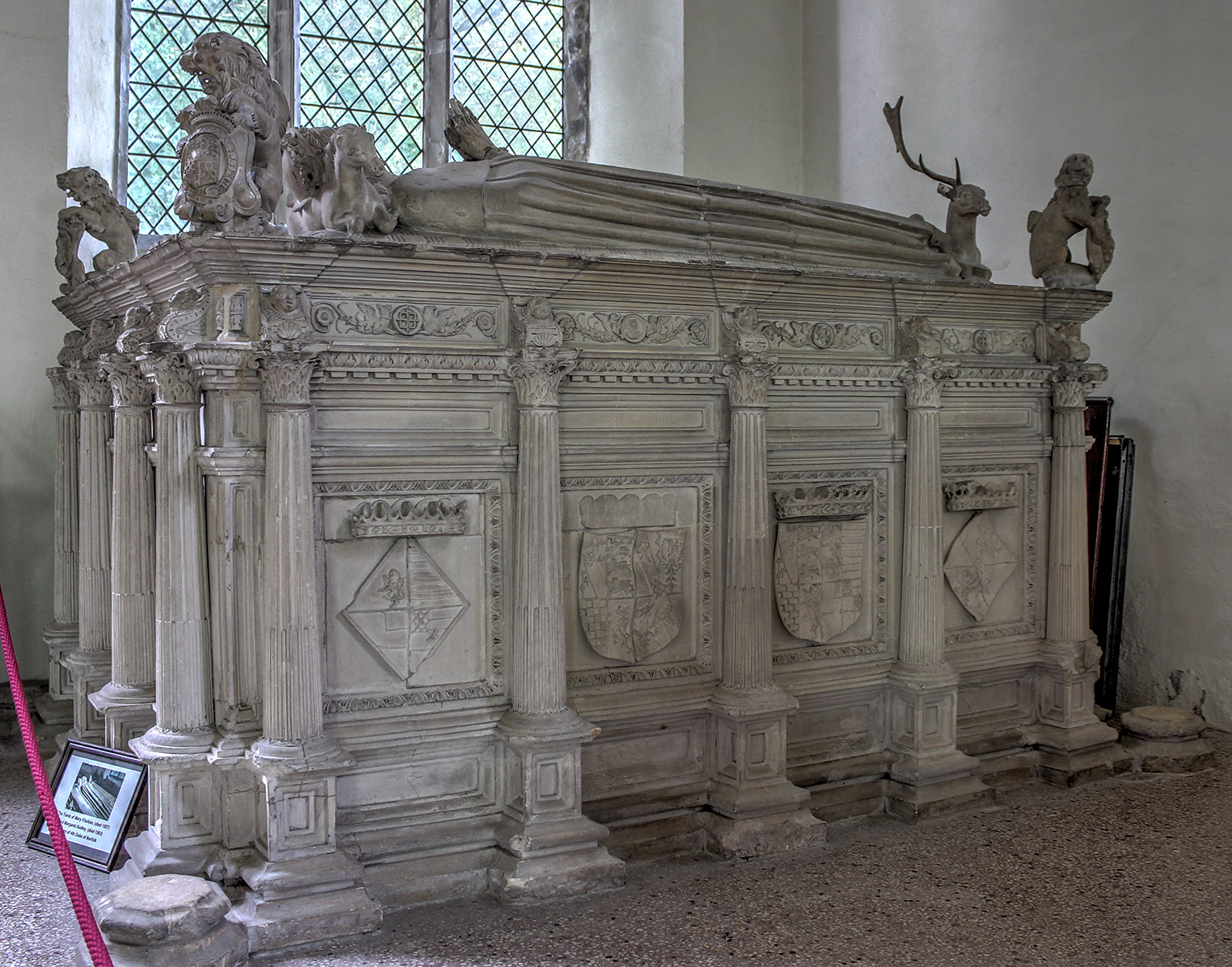 Royal Arms banner above the grave of Catherine of Aragon at Peterborough Cathedral. Photo May 2015.