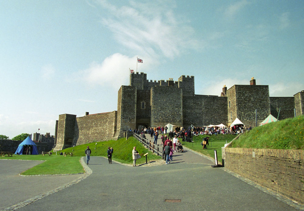 Walking up the entrance to Dover Castle. Photo May 2003.