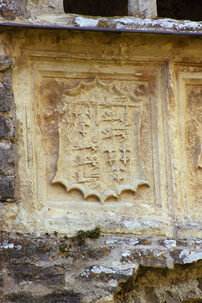 The arms of Prince Arthur at Carew Castle, Wales. Photo May 2003.