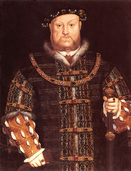 Henry VIII from later in life. After Hans Holbein. Nearly the same as the portrait below. |