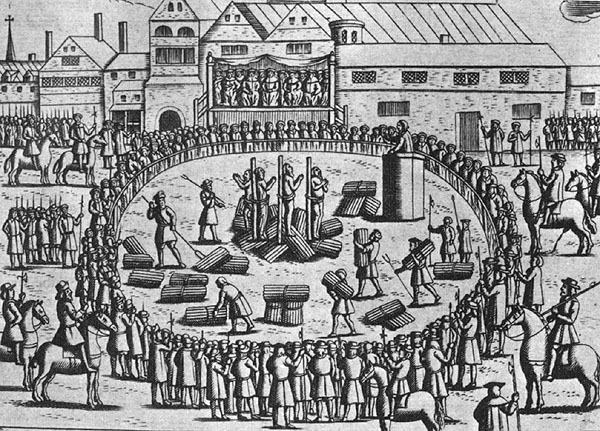Woodcut of the burning of Anne Askew at Smithfield in 1546 British Museum